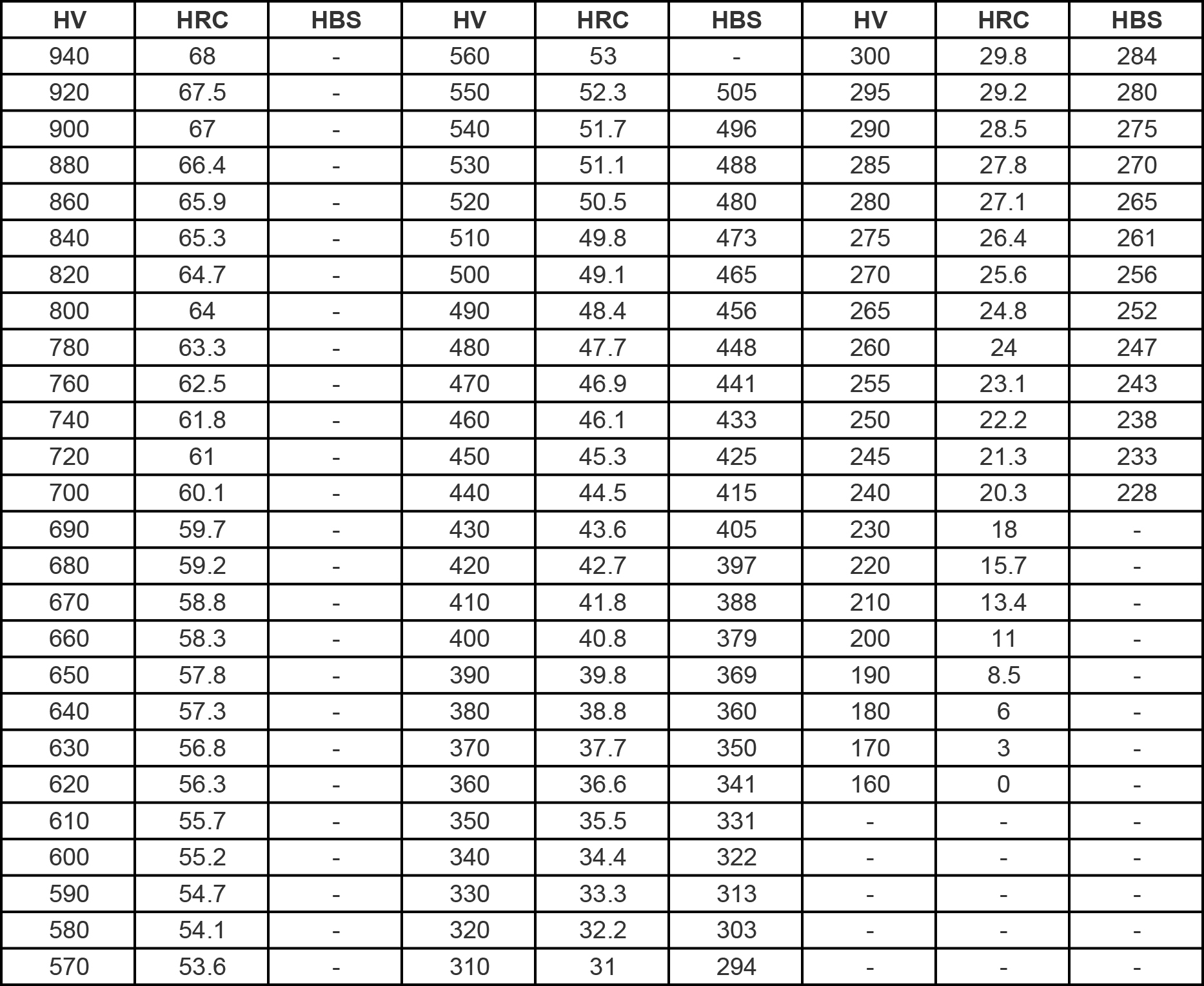 Hardness Conversion